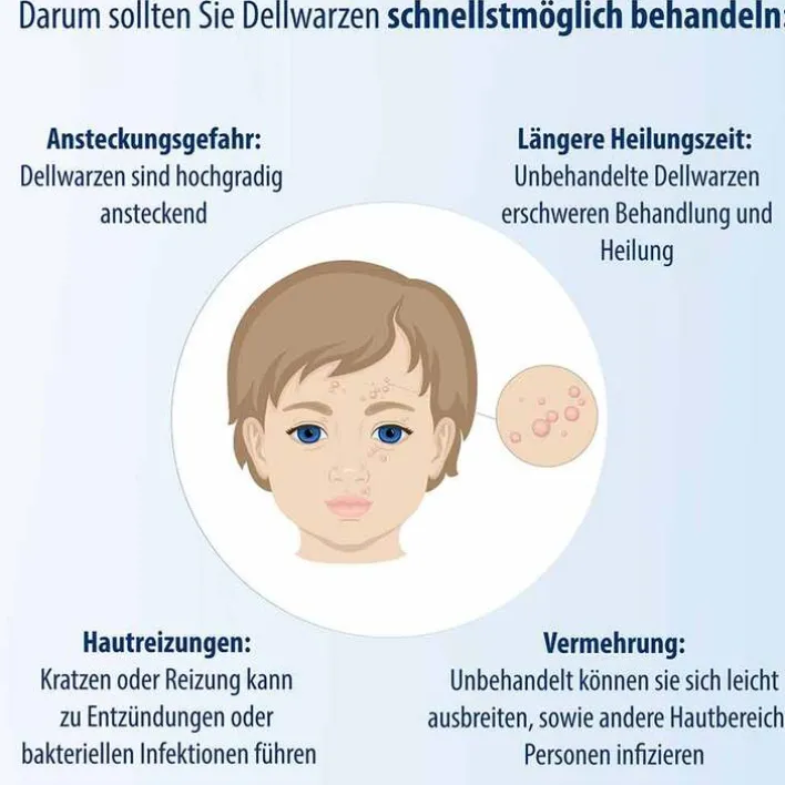 Dellwarzen sind eine Virusinfektion, die durch das zur Familie der Pockenviren gehörende, Molluscum-contagiosum-Virus ausgelöst wird, das neben Menschen auch andere Primaten befallen kann. Dieses Virus verursacht das Auftreten von durchscheinenden, stecknadelkopfartigen Knötchen mit einer Delle in der Mitte. Es handelt sich um eine sehr häufige Infektion bei Kindern, die jede Körperstelle betreffen kann. Bei Erwachsenen gibt es aufgrund der sexuellen Übertragung einen zweiten Höhepunkt.