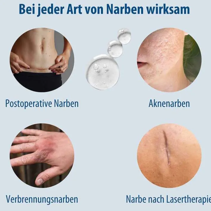 Das Narbengel eignet sich zur Anwendung bei postoperativen und posttraumatischen Narben, nach der Lasertherapie, nach Tattooentfernungen, bei Brandnarben, Aknenarben, hypertrophen Narben und Keloiden, sowie bei Dehnungsstreifen.