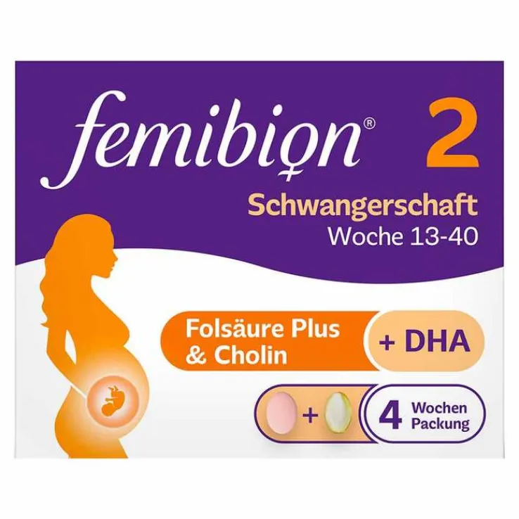 Femibion® 2 Schwangerschaft ist ein Nahrungsergänzungsmittel zur unterstützenden Versorgung von Mutter und Baby mit für die gesunde Entwicklung des Kindes wichtigen Nährstoffen. Femibion® 2 Schwangerschaft ist ab der 13. Schwangerschaftswoche bis zur Geburt – und damit über die gesamte Dauer der Wachstumsphase des Babys hinweg – anwendbar.