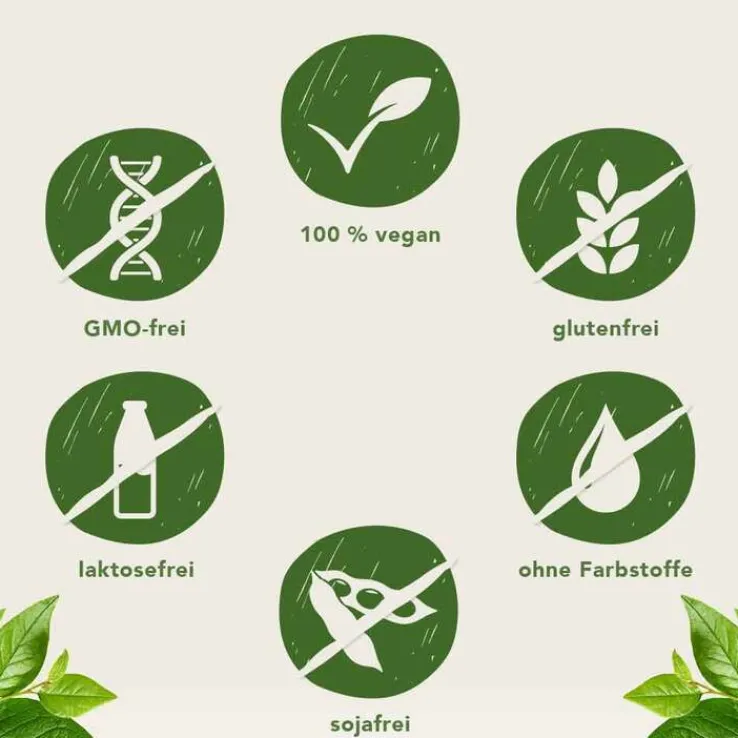 - GMO-frei, glutenfrei, laktosefrei, sojafrei, ohne Farbstoffe