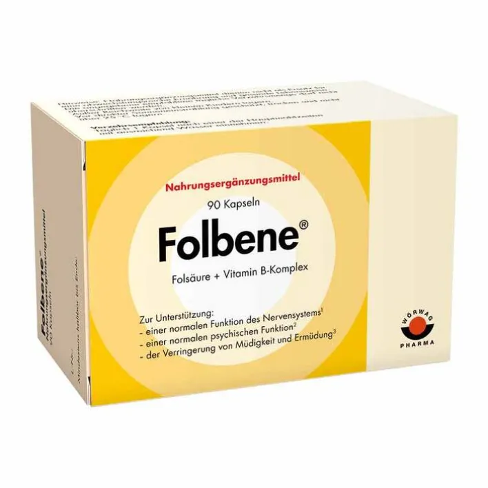Folbene-Kapseln enthalten die essentiellen Vitamine B2, B6, B12 und Folsäure, wodurch sie eine sinnvolle Ergänzung zu den über die üblichen Nahrungsmittel aufgenommenen Mengen dieser B-Vitamine darstellen. Eine bedarfsdeckende Versorgung mit diesen Vitaminen trägt zum normalen Homocystein-Stoffwechsel, zur normalen psychischen Funktion (oder zur Verringerung von Müdigkeit und Erschöpfung) und zur normalen Funktion des Immunsystems bei.*