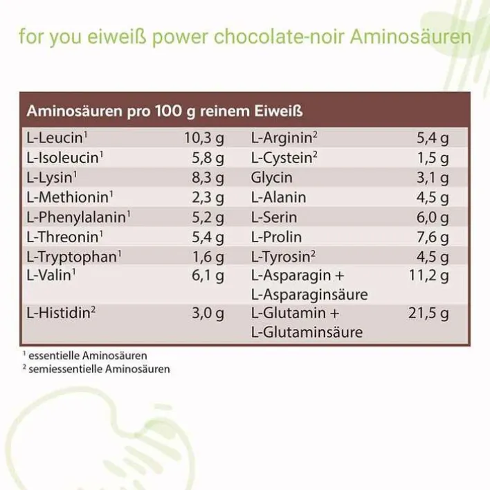 - Hühnereieiweiß enthält bestimmte Aminosäuren, welche nur limitiert in den drei anderen Eiweißpulver-Komponenten enthalten sind.
