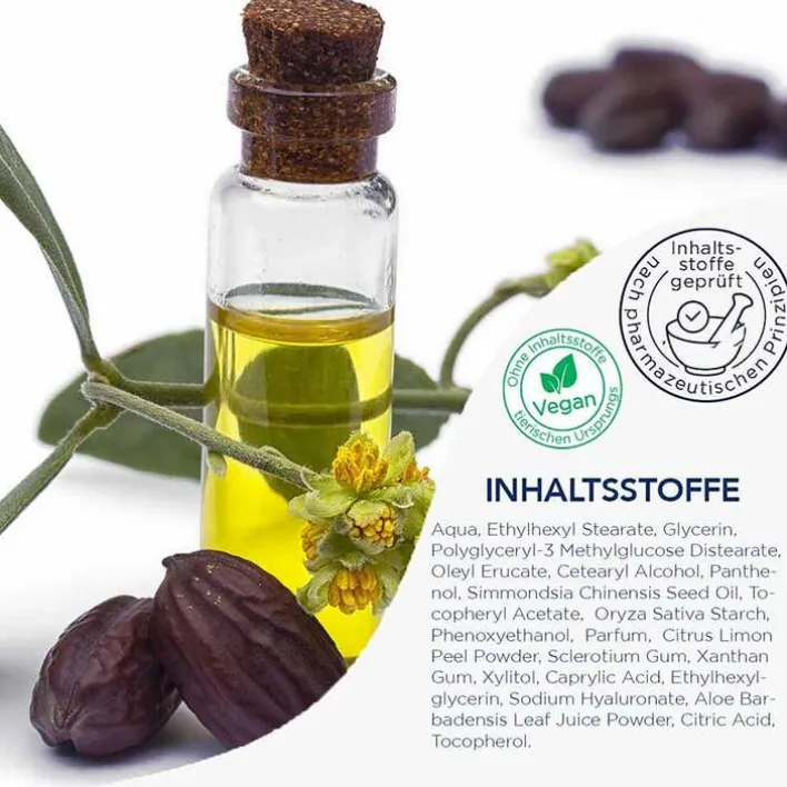 - mit Aloe vera, Jojobaöl, langkettigem Hyaluron, Panthenol und Vitamin E