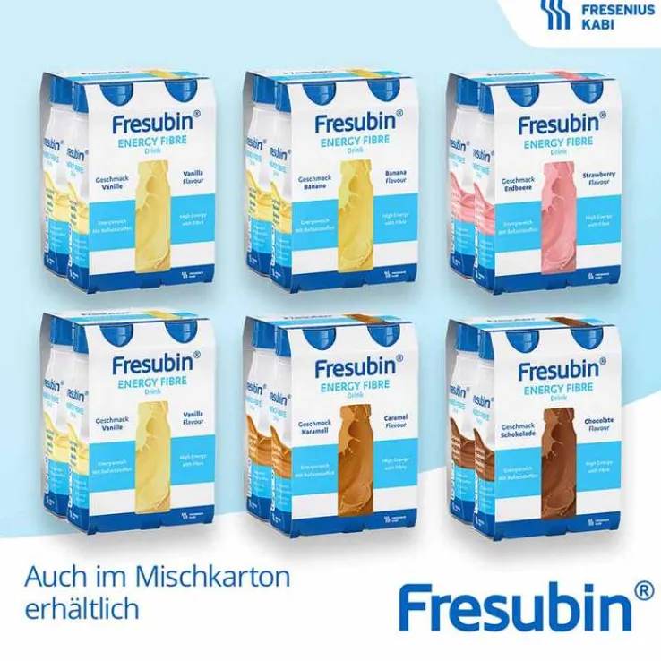 Hierbei kann es vor allem bei erhöhtem Energiebedarf durch z. B. Stoffwechselerkrankungen, Darmerkrankungen oder bei Schluckbeschwerden (Dysphagie) helfen, den Kalorienbedarf des Körpers zu decken und ausreichend mit Energie zu versorgen. Durch die enthaltenen Ballaststoffe, wird die gesunde Ernährungsbasis von Fresubin Energy Fibre Drink abgerundet.