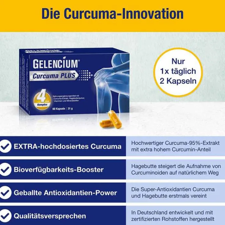 Gelencium Curcuma Plus – das Nahrungsergänzungsmittel für Bindegewebe, Knochen, Knorpel, Muskeln sowie Immunsystem und Zellschutz.*