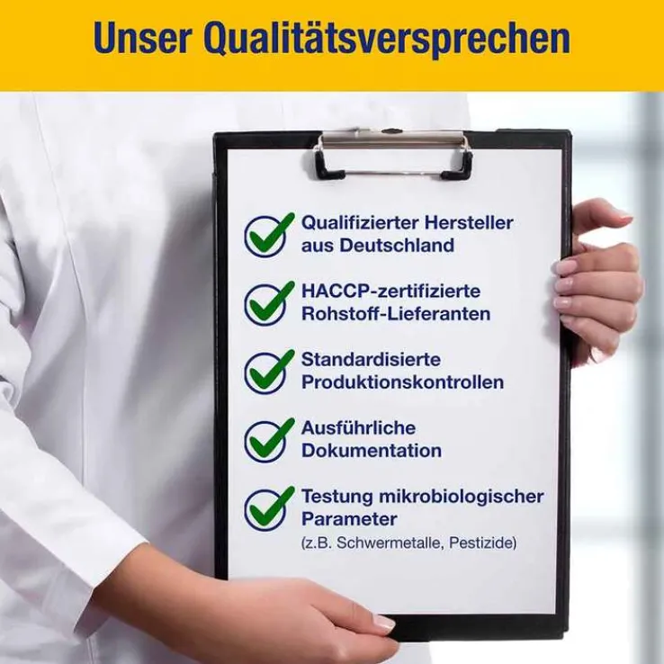Die angegebene empfohlene tägliche Verzehrsmenge darf nicht überschritten werden. Nahrungsergänzungsmittel dienen nicht als Ersatz für eine ausgewogene und abwechslungsreiche Ernährung und eine gesunde Lebensweise.