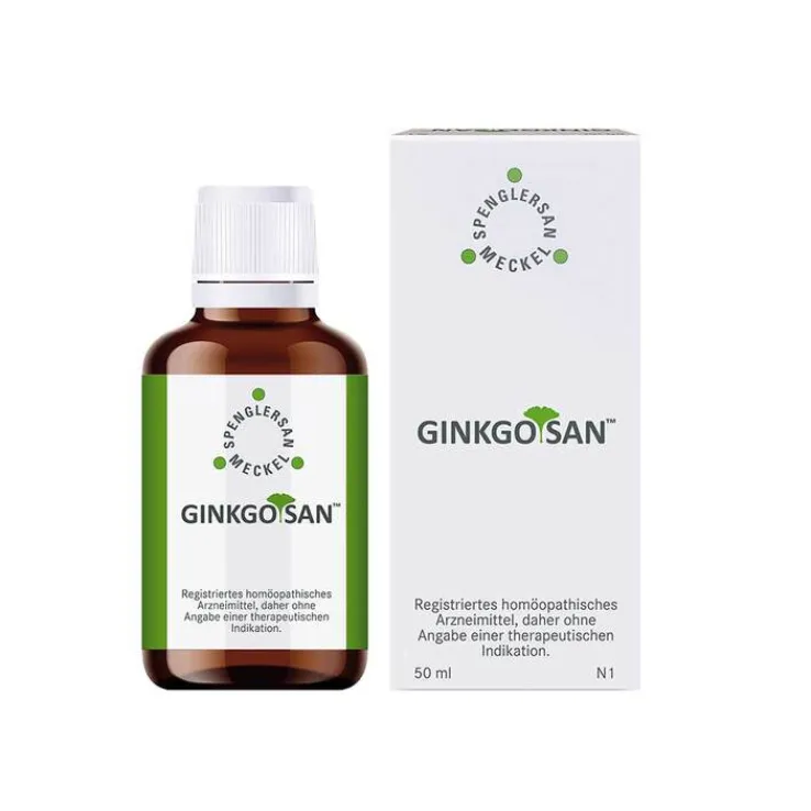 GINKGOSAN™ Flüssige Verdünnung zum Einnehmen. Zur Anwendung bei Erwachsenen und Kindern ab 12 Jahren. Wirkstoff: Ginkgo biloba e foliis sicc. Dil. D4. GINKGOSAN™ ist ein registriertes homöopathisches Arzneimittel und daher ohne Angabe einer therapeutischen Indikation. Warnhinweise: Enthält 52.6Vol.-% Alkohol. Zu Risiken und Nebenwirkungen lesen Sie die Packungsbeilage und fragen Sie Ihre Ärztin, Ihren Arzt oder in Ihrer Apotheke. Spenglersan GmbH