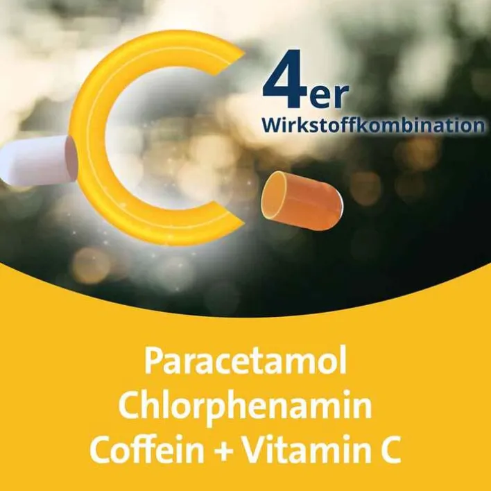 Die Wirkstoffe des Erkältungsmittels erzielen einen synergistischen Effekt – sie unterstützen sich gegenseitig in ihrer Wirkung. Verglichen mit herkömmlichen Erkältungs- und Schmerzmitteln können die Erkältungsbeschwerden so auch mit einer niedrigeren Dosierung der einzelnen Wirkstoffe gelindert werden.