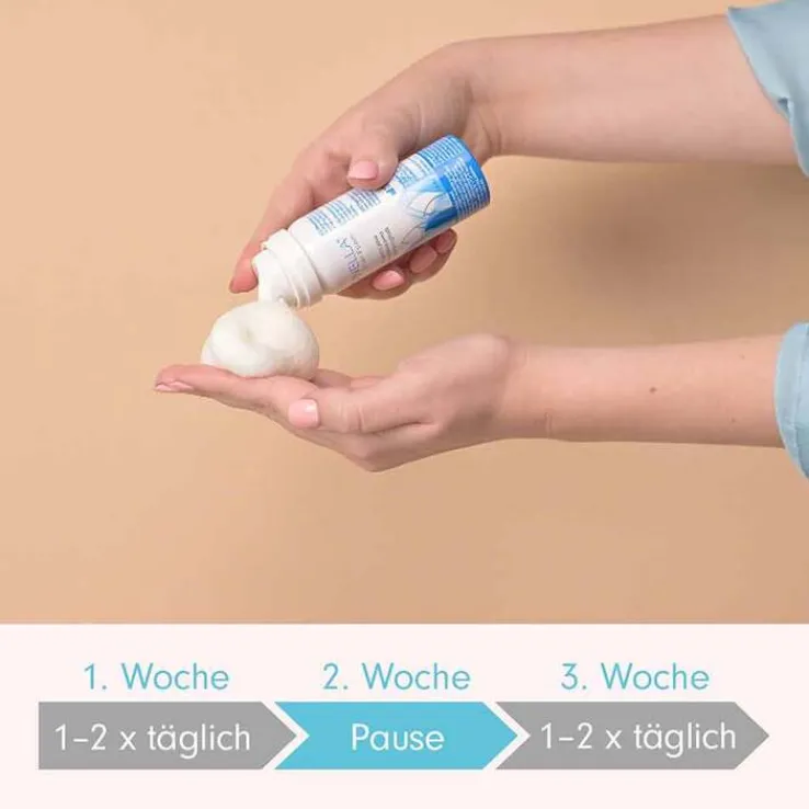 Reinigen Sie Ihre Haut vor der Anwendung sorgfältig und trocknen sie diese gut ab. Schütteln Sie die Flasche und sprühen Sie eine kleine Menge auf die gereinigte Hand und tragen den Schaum auf die betroffenen Stellen auf.