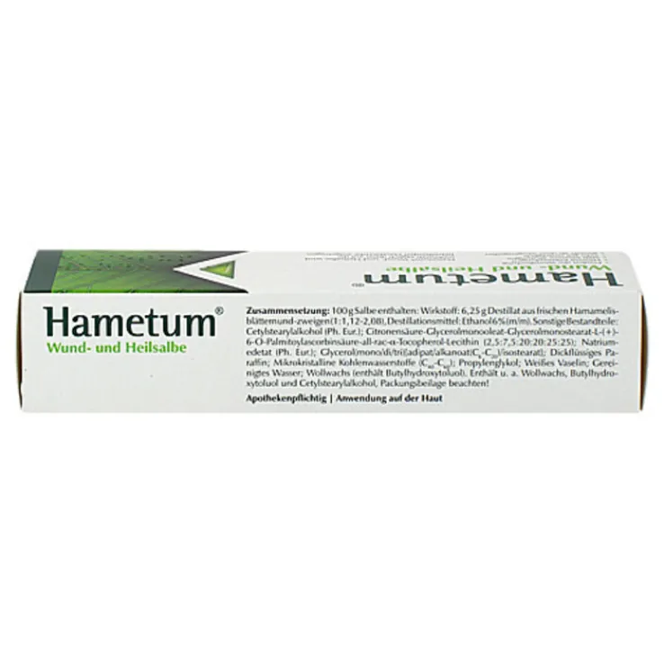 Hametum® Wund- und Heilsalbe ist eine Salbe zur lokalen Anwendung bei leichten Hautverletzungen und kleinflächigen Entzündungen der Haut und Schleimhäute.