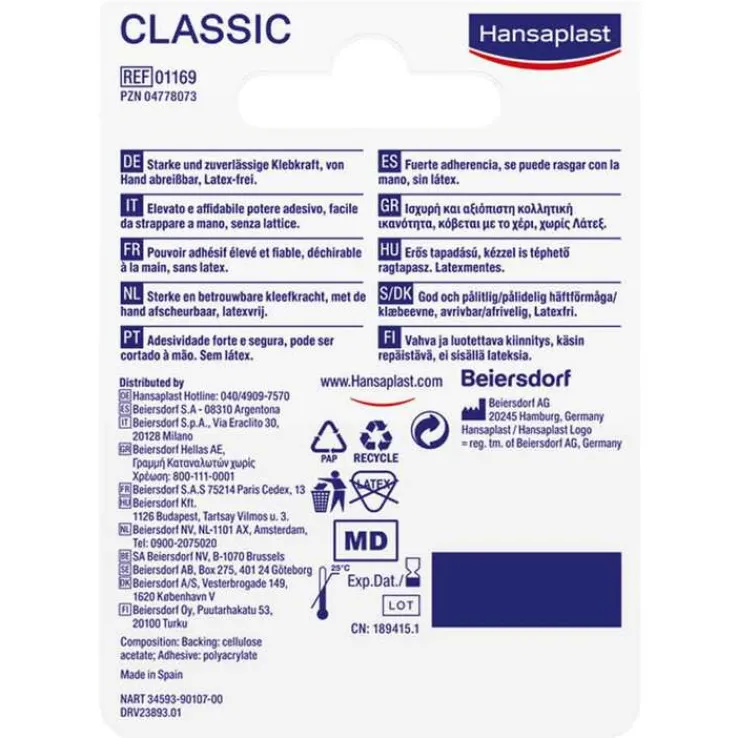 Hansaplast Classic Fixierpflaster ist besonders gut geeignet für die erste Hilfe zur einfachen und sicheren Fixierung von Verbänden. Es ist in zwei unterschiedlichen Breiten erhältlich, bietet eine starke Klebekraft und ist leicht von Hand reißbar.