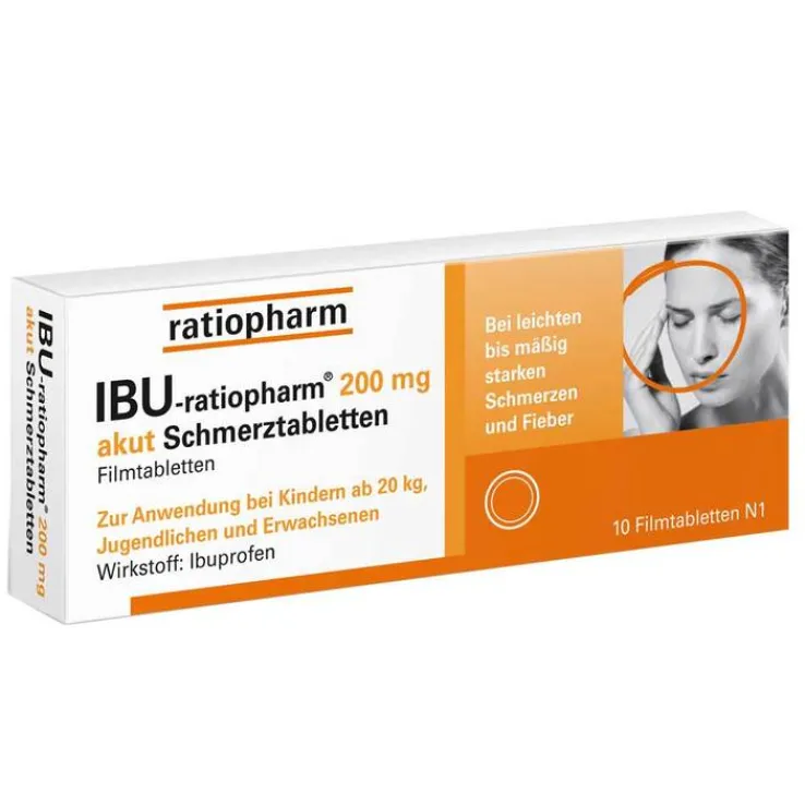 IBU-ratiopharm® 200 mg akut Schmerztabletten. Wirkstoff: Ibuprofen. Anwendungsgebiete: Leichte bis mäßig starke Schmerzen wie Kopfschmerzen, Zahnschmerzen, Regelschmerzen, Fieber. Warnhinw.: Bei Schmerzen oder Fieber ohne ärztlichen Rat nicht länger anwenden als in der Packungsbeilage vorgegeben! AM enth. weniger als 1 mmol (23 mg) Natrium pro Filmtbl., d. h., es ist nahezu „natriumfrei“. Apothekenpflichtig. Zu Risiken und Nebenwirkungen lesen Sie die Packungsbeilage und fragen Sie Ihre Ärztin, Ihren Arzt oder in Ihrer Apotheke. 4/25 .