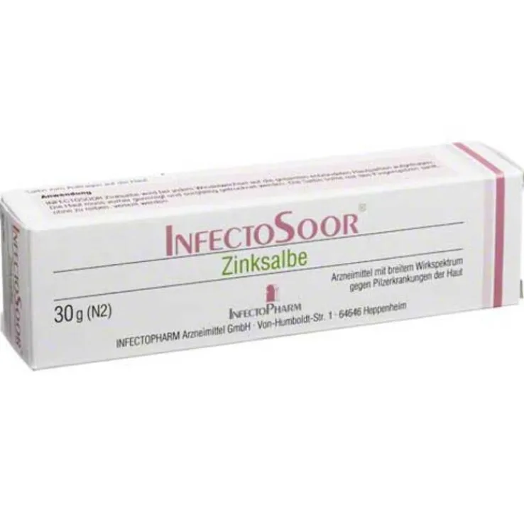 In Infectosoor Zinksalbe wird der gegen Pilz helfende Wirkstoff mit Zink kombiniert. Zink hilft, die befallene Haut zu trocknen und die Entzündung zu lindern. Infectosoor Zinksalbe wird bei Entzündungen der Haut und Hautfalten durch Hefepilze (Candida), wie z.B. Windelsoor bei Babys angewendet.