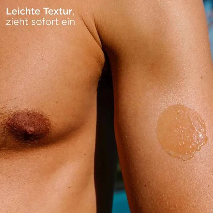Dank Wet-Skin-Technologie zieht der Sonnenschutz sowohl auf trockener als auch auf nasser Haut problemlos ein, ohne weiße Streifen zu hinterlassen – bei unverändert hohem Schutzfaktor.