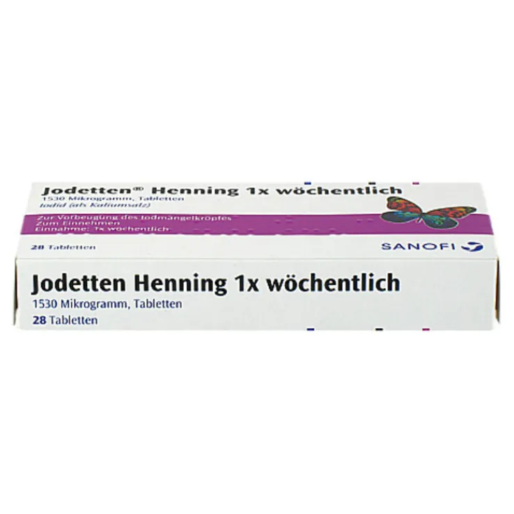 Jodetten Henning 1 x wöchentlich müssen nicht immer ganz genau am gleichen Tag einer Woche eingenommen werden müssen. Es empfiehlt sich, zwischen den Einnahmen Abstände von 7-10 Tagen einzuhalten.