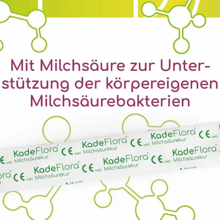 KadeFlora Milchsäurekur enthält Milchsäure eingebettet in einem Gel und entspricht mit pH-Wert 4 dem natürlichen Scheidenmilieu. Die Milchsäure führt zur Ansäuerung des Scheidenmilieus und regeneriert den natürlich schützenden, sauren pH-Wert. Die körpereigenen Milchsäurebakterien finden so günstigere Vermehrungsbedingungen und können ihre Funktion wieder vollständig aufnehmen.