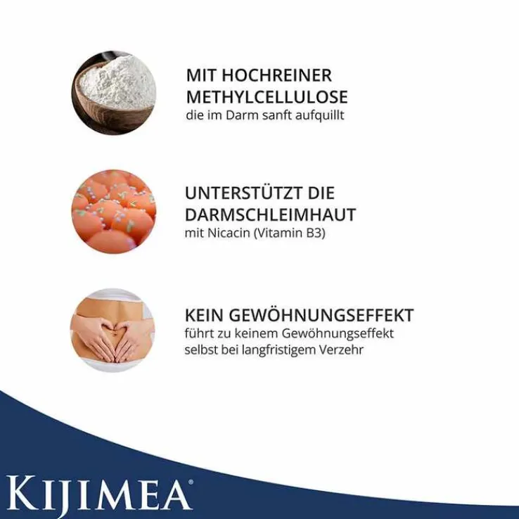 Kijimea Regularis enthält hochreine Methylcellulose natürlichen Ursprungs. Diese natürlichen Fasern quellen im Darm durch Wasseraufnahme auf. Darüber hinaus enthält Kijimea Regularis Niacin (Vitamin B3), zur Unterstützung der gesunden Darmschleimhaut.*
