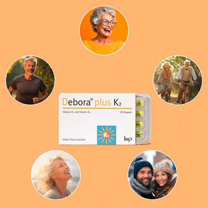 Die regelmäßige Einnahme von Debora plus K2 Kapseln hilft dabei, die benötigten Mengen von Vitamin D und K2 bereitzustellen und dadurch zweifach für gesunde Knochen sorgen.*