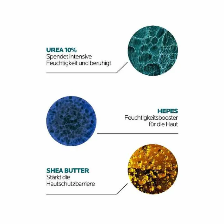 Die Lipikar Lait Urea 10 % ist die optimale Feuchtigkeitslotion für sehr trockene, raue und schuppige Haut. Dank ihrem Wirkstoffkomplex aus 10% Urea, HEPES und Sheabutter wird die die Haut bis zu 48 Stunden lang mit intensiver Feuchtigkeit versorgt. Gleichzeitig hat die Urea Creme eine beruhigende Wirkung und stärkt die Hautschutzbarriere effektiv.