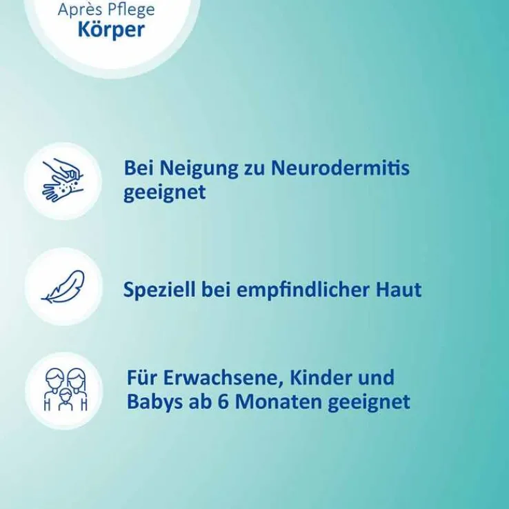 Die besonders milde Rezeptur ist ideal für sensible Haut und Neigung zu Neurodermitis, brennt nicht in den Augen und eignet sich ebenfalls für Babys und Kinder ab 6 Monaten.