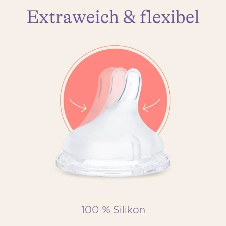 - extraweiches und flexibles Silikon: bewahrt das natürliche Saugverhalten