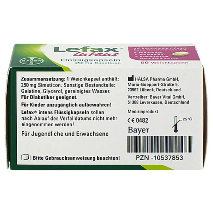 Die Dauer der Anwendung richtet sich nach dem Verlauf der Beschwerden. Lefax® intens Flüssigkapseln können, falls erforderlich, auch über längere Zeit eingenommen werden. Bei anhaltenden Beschwerden sollte ein Arzt/eine Ärztin aufgesucht werden, damit die Ursache untersucht werden kann.