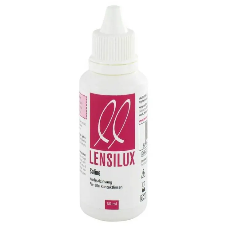 Lensilux Saline ist eine Abspüllösung für alle Kontaktlinsen. Bei der wöchentlichen enzymatischen Reinigung kann die Tablette in Lensilux Saline aufgelöst werden.