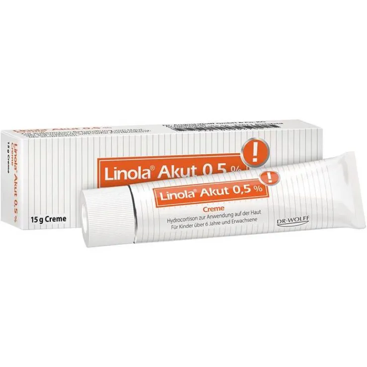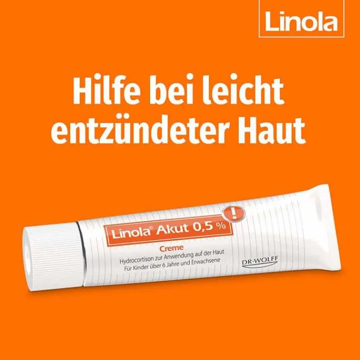 Linola® Akut 0,5%. Wirkstoff: 0,5% Hydrocortison. Anwendung: Bei Hauterkrankungen mit geringer Ausprägung, die auf eine äußerliche Behandlung mit schwach wirksamen Kortikosteroiden ansprechen. Zu Risiken und Nebenwirkungen lesen Sie die Packungsbeilage und fragen Sie Ihre Ärztin, Ihren Arzt oder in Ihrer Apotheke.