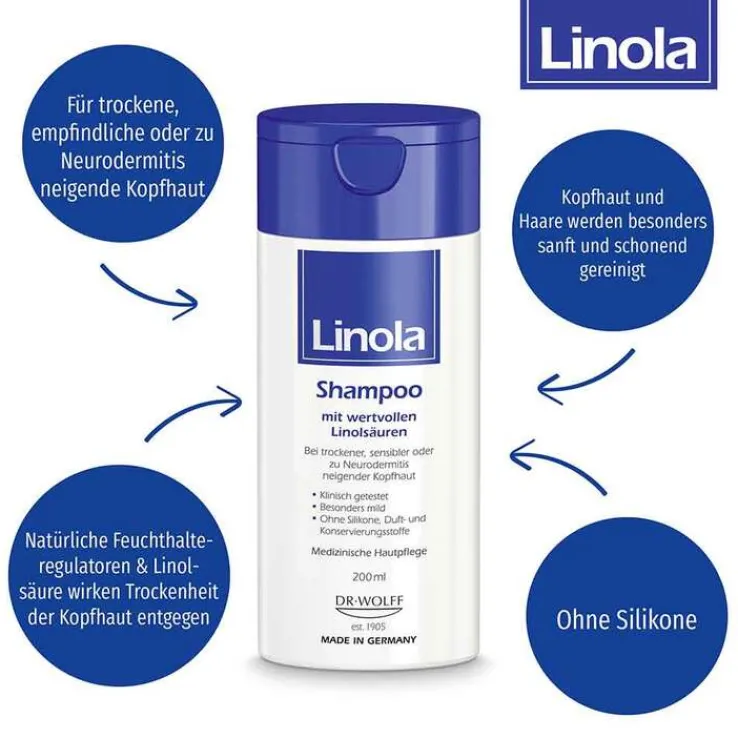 - Linola Shampoo ist frei von Silikonen und auch für Neurodermitiker geeignet.