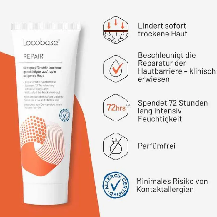 Locobase Repair Creme ist eine Spezialcreme, die sich seit Generationen bei sehr trockener und strapazierter Haut bewährt, insbesondere auch bei Hautekzemen. Ihre Wirksamkeit wurde in klinischen Studien nachgewiesen.