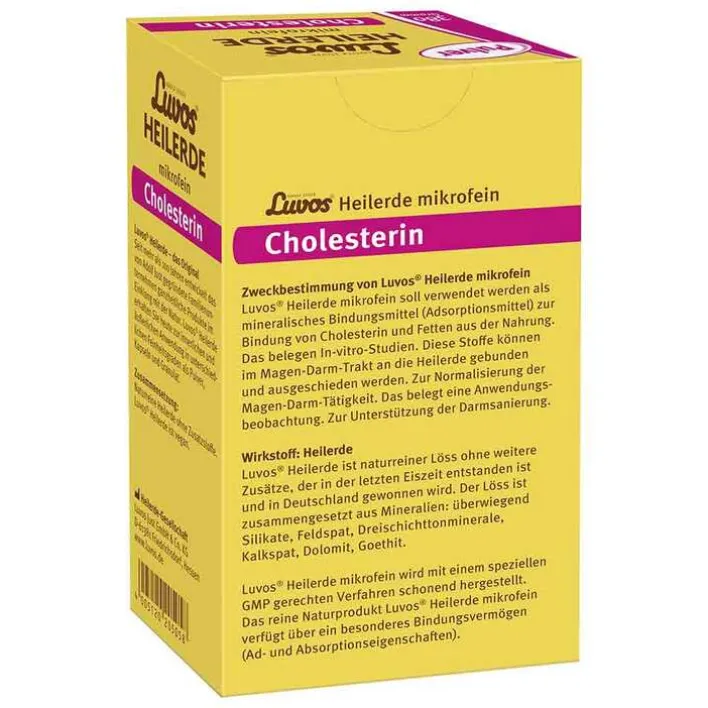Zusätzlich bindet die naturreine Luvos® Heilerde im Darm Gallensäuren, sodass diese vermehrt ausgeschieden werden. Dies regt die Neubildung von Gallensäuren an, wofür der Körper Cholesterin verbraucht. Damit unterstützt Luvos-Heilerde mikrofein eine herzgesunde Ernährung. Nebenwirkungen sind nicht bekannt.