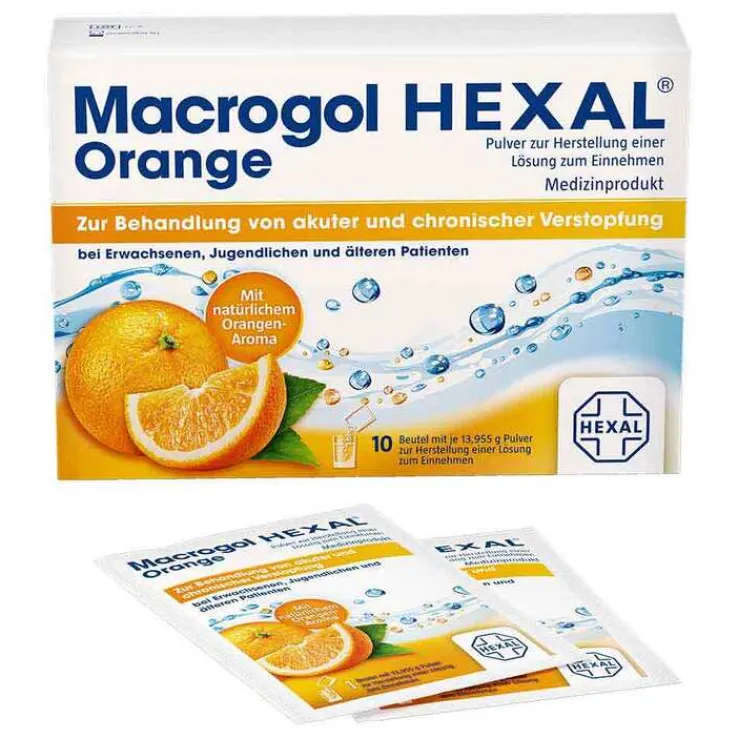 Macrogol HEXAL Orange Pulver zur Herstellung einer Lösung zum Einnehmen Beutel , 10 St