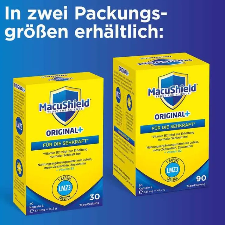 Macushield Original ist ein Nahrungsergänzungsmittel. Es enthält die Carotinoide Lutein, meso-Zeaxanthin, Zeaxanthin sowie Vitamin B2.* Vitamin B2 (Riboflavin) trägt zur Erhaltung normaler Sehkraft bei.
