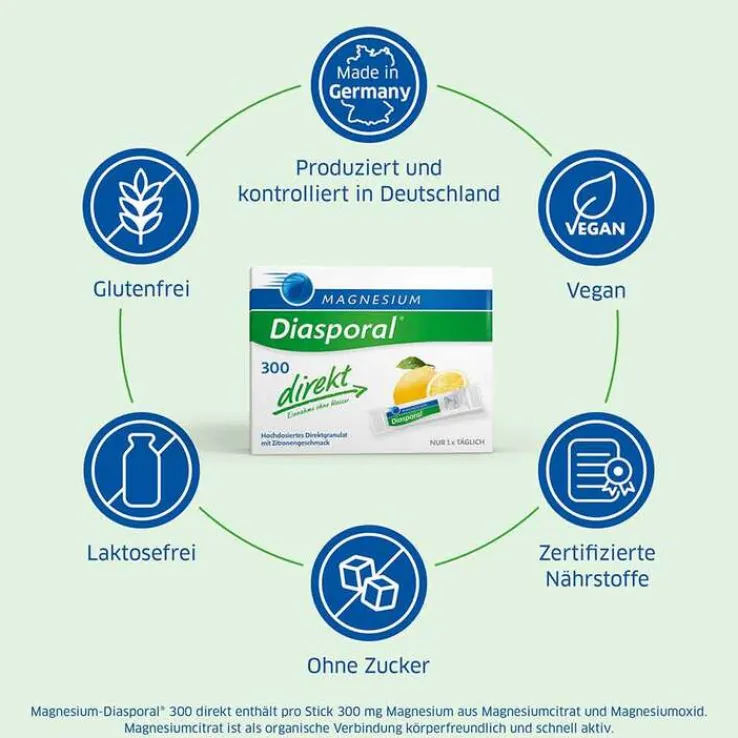 Magnesium-Diasporal 300 direkt Direktgranulat – schnell und direkt: ideal für Aktive und für unterwegs