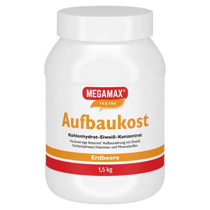 Megamax Aufbaukost ist eine fettarme und leicht verzehrbare Aufbaunahrung mit vielen lebenswichtigen Nährstoffen. Die Aufbaunahrung enthält Eiweiß, Kohlenhydrate, Vitamine und Mineralstoffe. Die im Produkt enthaltenen Proteine tragen zu einer Zunahme und zur Erhaltung von Muskelmasse und zur Erhaltung normaler Knochen bei. Die Mineralstoffe Calcium und Magnesium sorgen zudem in Verbindung mit den Vitaminen B6, B12, Pantothensäure und Niacin für einen normalen Energiestoffwechsel. B-Vitamine unterstützen das Nervensystem und sorgen für normale psychische Funktionen. Biotin, Niacin, Riboflavin leisten einen Beitrag zur Erhaltung gesunder Schleimhäute. Hauptbestandteil der Aufbaunahrung sind Kohlenhydrate.