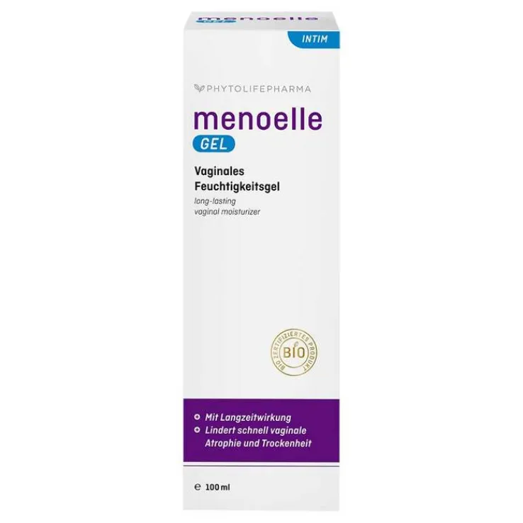 Menoelle Gel ist ein bio-zertifiziertes Feuchtigkeitsgel auf Wasserbasis und spendet natürliche, langanhaltende Feuchtigkeit bei trockener Vaginalschleimhaut.