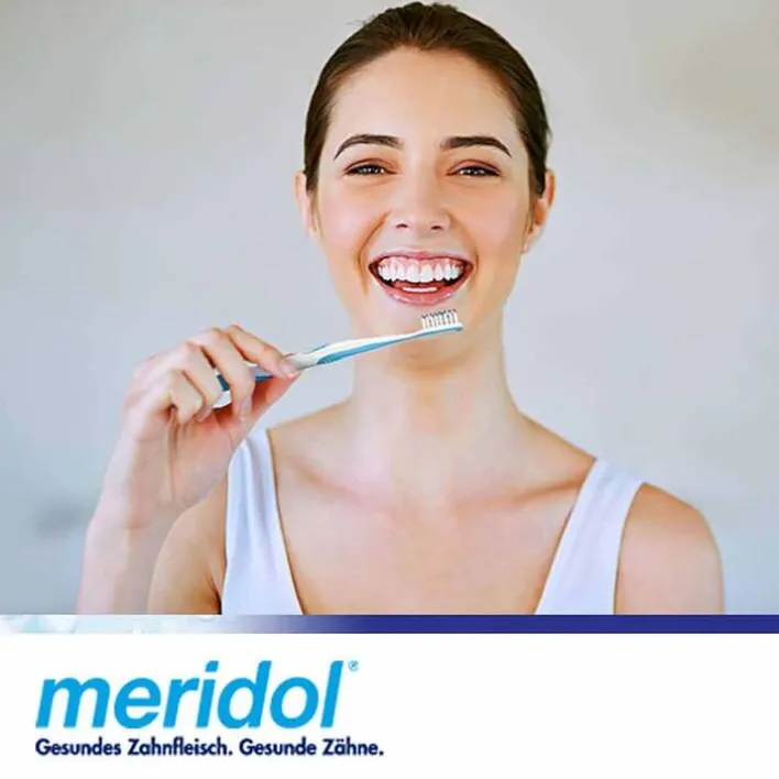 Verwenden Sie täglich eine Zahnseide zur Reinigung der Zahnzwischenräume (z.B. Meridol Flausch Zahnseide gewachst) und kombinieren Sie die Meridol Parodont Expert Zahnbürste extra sanft mit der Meridol Parodont-Expert Zahnpasta mit klinisch geprüfter Wirkformel für eine optimale Pflege Ihres Mundraums.