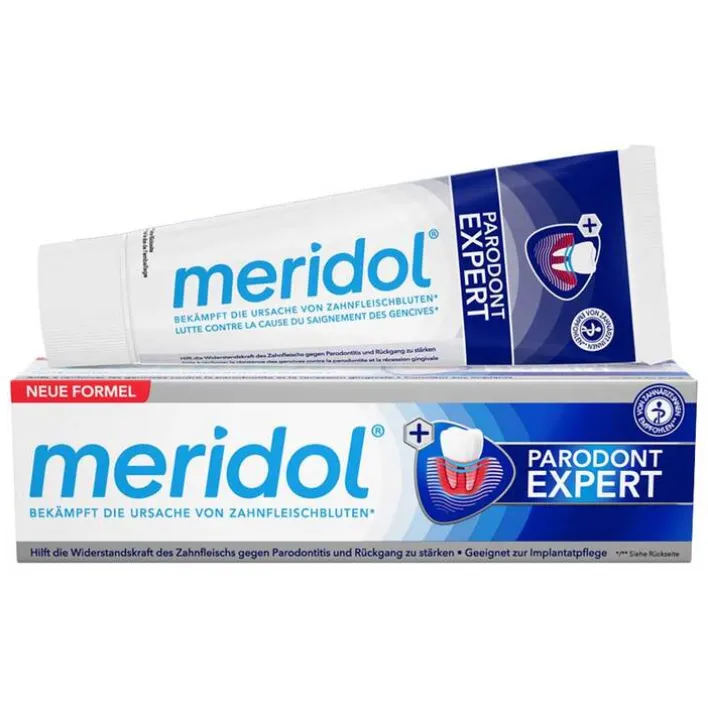 Die Meridol Parodont Expert Zahnpasta, eine Zahncreme mit klinisch bestätigter 2-facher Formel mit Wirkungsverstärker, enthält eine im Vergleich zur regulären MeridolZahnpasta höhere Konzentration antibakterieller Inhaltsstoffe. Meridol Parodont Expert Zahnpasta wirkt antibakteriell und unterstützt so den natürlichen Heilungsprozess des Zahnfleisches. Bei regelmäßiger Anwendung wird die Widerstandskraft des Zahnfleischs gegen Zahnfleischprobleme und Parodontitis gestärkt.