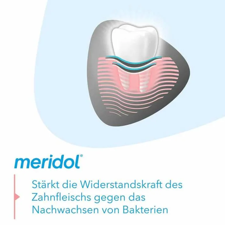Meridol sanftes Weiss Zahnpasta bekämpft die bakteriellen Ursachen von Zahnfleischentzündungen und entfernt sanft Verfärbungen auf der Zahnoberfläche.