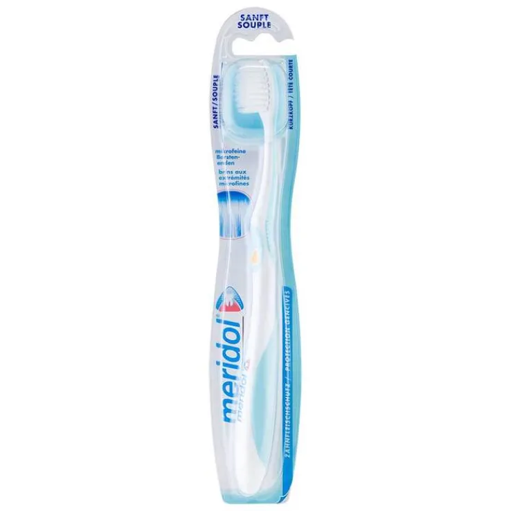Die Meridol Zahnfleisch sanft Zahnbürste reinigt die Zähne bis hin zum Zahnfleischsaum besonders gründlich und schont dabei sogar bereits gereiztes Zahnfleisch.