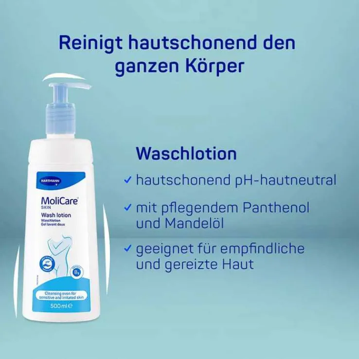 - MoliCare® Skin Waschlotion zur sanften, pH-hautneutralen Reinigung des ganzen Körpers