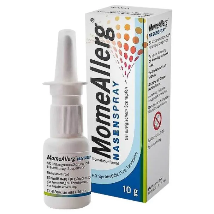 Momeallerg ist ein Heuschnupfenspray und enthält den Wirkstoff Mometason. Es ist ein verwandter Stoff zum Kortison mit einer antiallergischen und antientzündlichen Wirkung. Als Nasenspray verwendet, kann er helfen eine Entzündung (Schwellung und Reizung der Nase), Niesen, Jucken und eine laufende Nase zu lindern, wenn diese Symptome durch einen Heuschnupfen ausgelöst werden.
