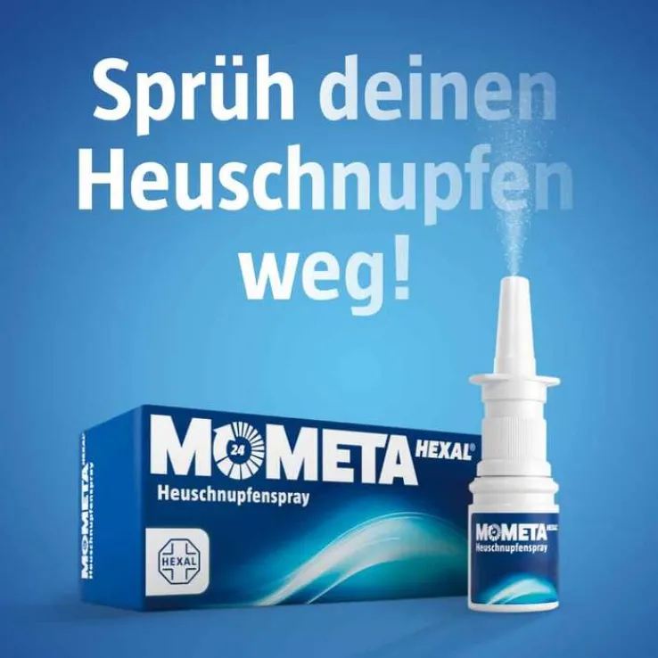 MometaHEXAL® Heuschnupfenspray, 50 Mikrogramm/Sprühstoß Nasenspray, Suspension: Wirkstoff: Mometasonfuroat (Ph.Eur.). Anwendungsgebiete: MometaHEXAL® Heuschnupfenspray wird bei Erwachsenen zur Behandlung der Beschwerden eines Heuschnupfens (saisonale allergische Rhinitis) angewendet, sofern die Erstdiagnose des Heuschnupfens durch einen Arzt erfolgt ist. Warnhinweis: Enthält Benzalkoniumchlorid. Zu Risiken und Nebenwirkungen lesen Sie die Packungsbeilage und fragen Sie Ihre Ärztin, Ihren Arzt oder in Ihrer Apotheke! Mat.-Nr.: 2/51013869-02 Stand: September 2020 Hexal AG, 83607 Holzkirchen, www.hexal.de