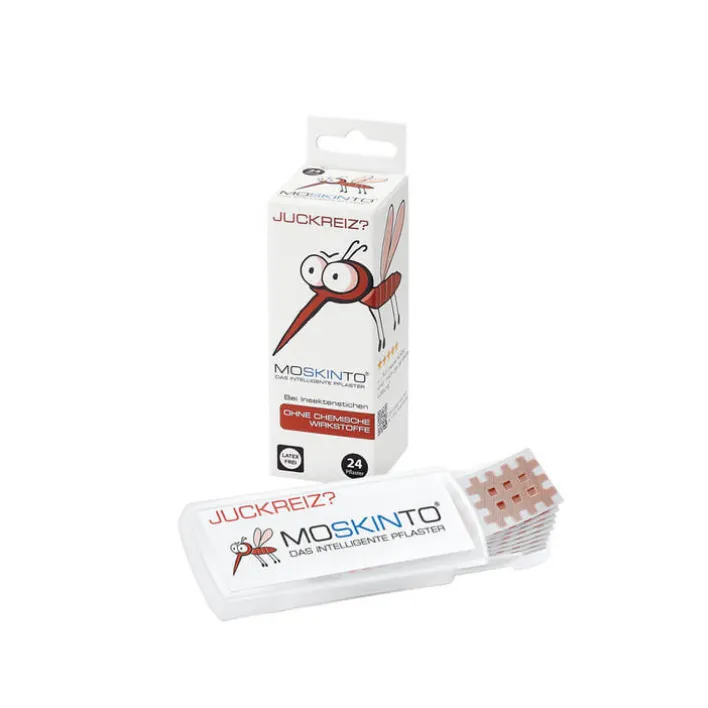 Hat Sie ein Insekt gestochen und Sie leiden unter Juckreiz und die erste Schwellung ist schon zu sehen? Dann verwenden Sie das Moskinto Mückenpflaster. Das Pflaster ist frei von Medikamenten und Wirkstoffen und erzielt seine Wirkung rein mechanisch. Der Juckreiz wird unterbunden und die Schwellungen lassen nach. Der Effekt wird durch leichtes Anheben der ersten Hautschicht erzielt. Die Wirkung ist nicht wissenschaftlich bewiesen und beruht auf Fallstudien. Kinder können mit Moskinto Ihre Insektenstiche selbständig behandeln.