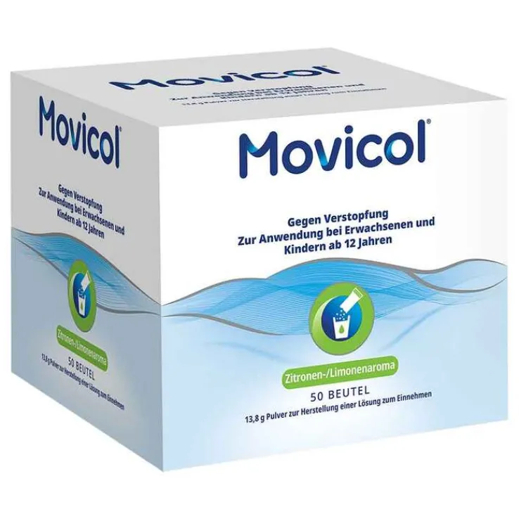 MOVICOL® ist ein gut verträgliches und schnell wirkendes Abführmittel (Laxans) zur Behandlung akuter und chronischer Verstopfung (Obstipation) bei Erwachsenen und Kindern ab 12 Jahren. Das Medizinprodukt erscheint in der Darreichungsform eines Pulvers in Beuteln zur Herstellung einer trinkbaren Lösung mit einem angenehm frischen Geschmack nach Zitrone, Limone, Orange, Schoko, aromafrei oder fertige Trinkbeutel.