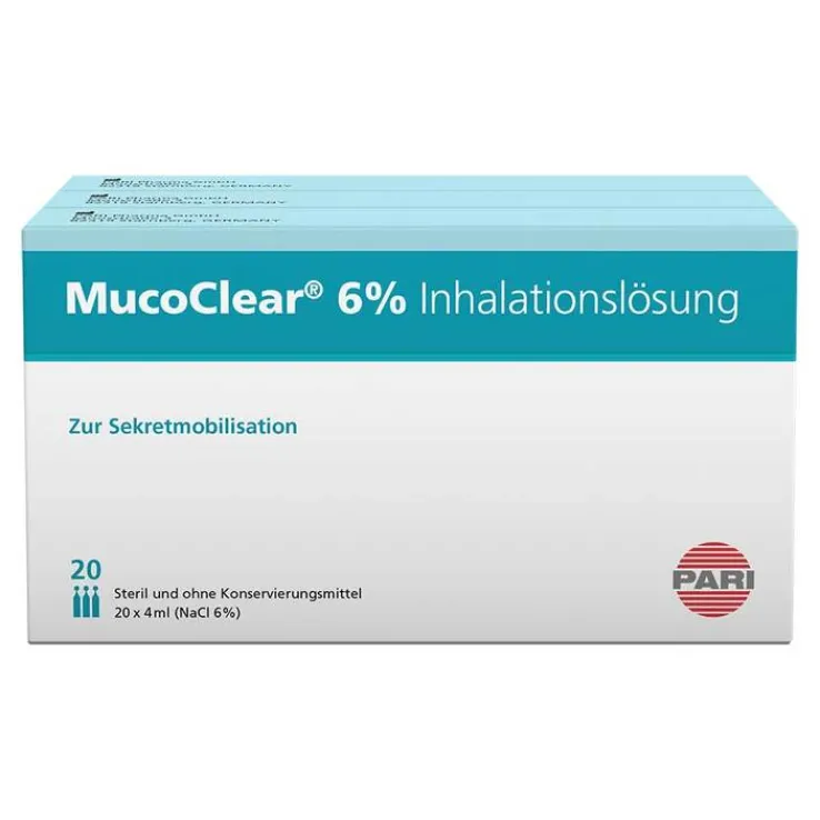 Löst den Schleim und erleichtert das Abhusten dank hoher Salzkonzentration. Die hypertone Salzlösung wird bei Mukoviszidose, COPD und Bronchiektasen empfohlen.