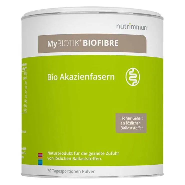 Mybiotic Biofibre Bio Akazienfaserpulver ist ein ballaststoffreiches Naturprodukt aus 100 % reinen Pflanzenfasern. Es enthält hochwertige lösliche Ballaststoffe, die eine ausgewogene Ernährung unterstützen. Ballaststoffe gehören zu einer gesunden Ernährung, da sie die Verdauung unterstützen, sättigend sind und der Darmflora als Nahrungsquelle dienen.