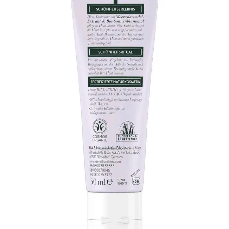 Die Nachtcreme mit Meereslavendel-Extrakt & Bio-Sonnenblumenöl pflegt die Haut intensiv über Nacht und verbessert die Hautelastizität. Für ein gelindertes Trockenheitsgefühl.