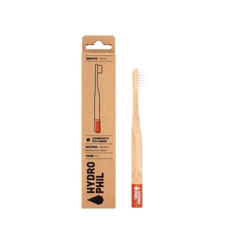 Nachhaltige Kinderzahnbürste Bambus extra weich rot