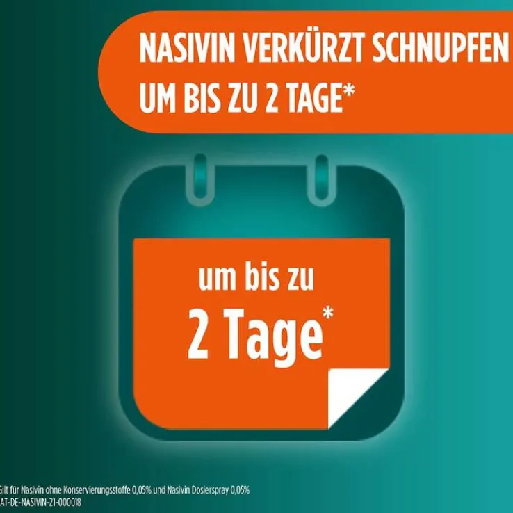 Nasivin® Nasenspray ohne Konservierungsstoffe Erwachsene und Schulkinder (0,5 mg/ml). Wirkstoff: Oxymetazolinhydrochlorid. Anwendungsgebiete: Akuter und allergischer Schnupfen, anfallsweise auftretender Fließschnupfen. Zur Erleichterung des Sekretabflusses bei Entzündungen der Nasennebenhöhlen sowie bei Tubenmittelohrkatarrh in Verbindung mit Schnupfen. Zur diagnostischen Schleimhautabschwellung. Zu Risiken und Nebenwirkungen lesen Sie die Packungsbeilage und fragen Sie Ihre Ärztin, Ihren Arzt oder in Ihrer Apotheke. WICK Pharma, Zweigniederlassung der Procter & Gamble GmbH, D-65823 Schwalbach. Stand: Mai 2019